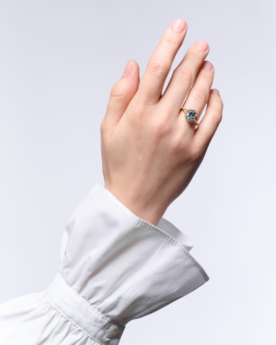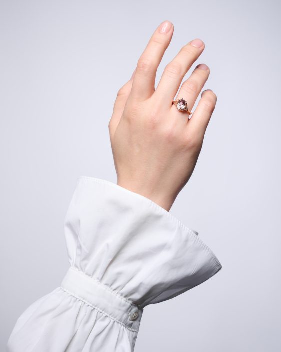 Another powerful symbol is the forest. “In many myths and fairy tales, the forest is a place of transformation, where heroes undergo trials that lead to personal growth. The forest can symbolize a spiritual or psychological journey. One where the individual changes and develops. Many cultures view forests as places of high spiritual energy,” describes Janja. The main gem stones of the collection are aquamarine and rose quartz. Both are linked to spiritual growth, enhancing intuition, and bringing a sense of calm and balance. Aquamarine was once a talisman for sailors, who believed it protected them from the dangers of the sea. “This stone is associated with courage and protection, especially when overcoming danger. It clarifies the mind and brings peace and tranquility. It aids in the ability to express oneself, allowing for experiences, and thus returning to one’s authenticity,” says Janja. Alongside aquamarine, rose quartz plays a key role in the Amor Fati collection. It opens the heart, allowing love to flow, both to receive and express. It is strongly connected with emotional healing. “It can soothe pain and sorrow, heal old wounds, and help us accept ourselves as we are,” the jeweler adds.