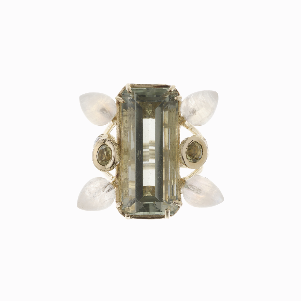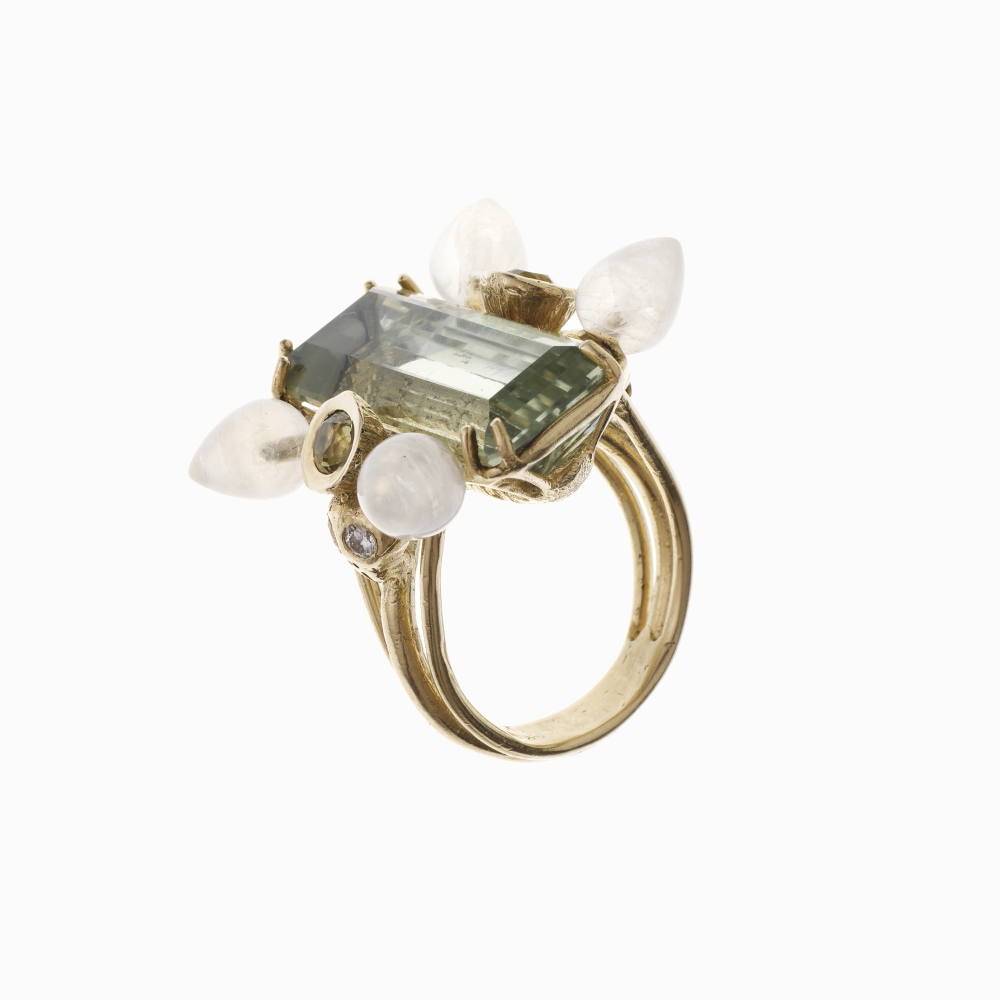 Crafted in 14K certified gold with beryl as a centre stone and with VS1-F diamonds.