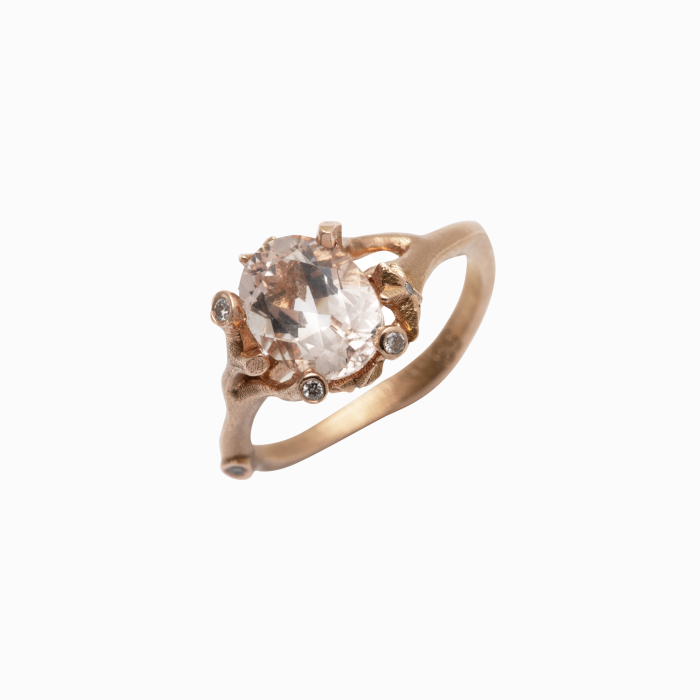 Crafted in 14K certified gold with 1.9 carat Morganite as a centre stone.
