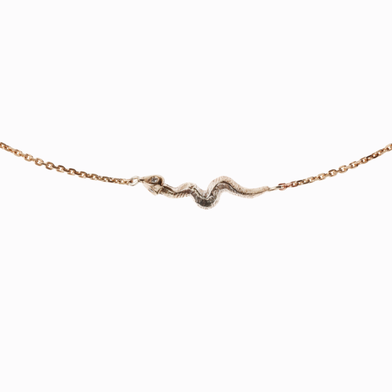 Pohyb hada vychází ze středu jeho těla a je v hlubokém propojení s vlastním nitrem. Tento vnitřní střed je klíčový pro náš pohyb v tomto světě. Neoddělitelně spjatý s půdou, kypří ji a zúrodňuje, bývá také symbolem plodnosti. Ve světě léčitelství má hluboký význam, a pro západní medicínu je ikonickým symbolem – zobrazeným na Aeskulapově holi. Jeho jed může být ve správném množství lékem. Někteří v něm vidí sílu, jiní ho naopak cítí jako hrozbu. Had je obrazem černobílého vidění světa, symbolem smrti i znovuzrození. Název kolekce je inspirován náhrdelníkem, který nosil hrdina Atrej z filmu Nekonečný příběh. Amulet s propletenými hady mu dodával sílu a odvahu na jeho cestě. Hlavním polodrahokamem kolekce je turmalín, kámen, který má schopnost posílit napojení na náš vnitřní střed.