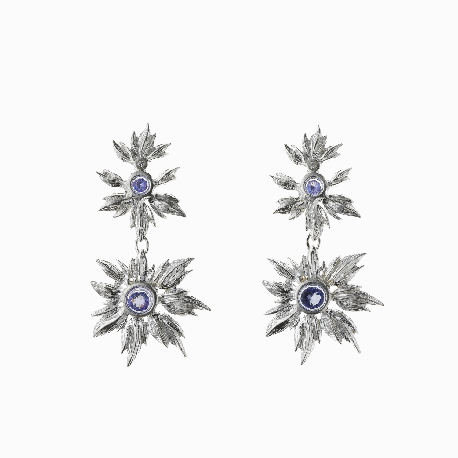 Vyrobeno ze stříbra s tanzanity nebo spessartiny, doplněné o diamanty SI1.