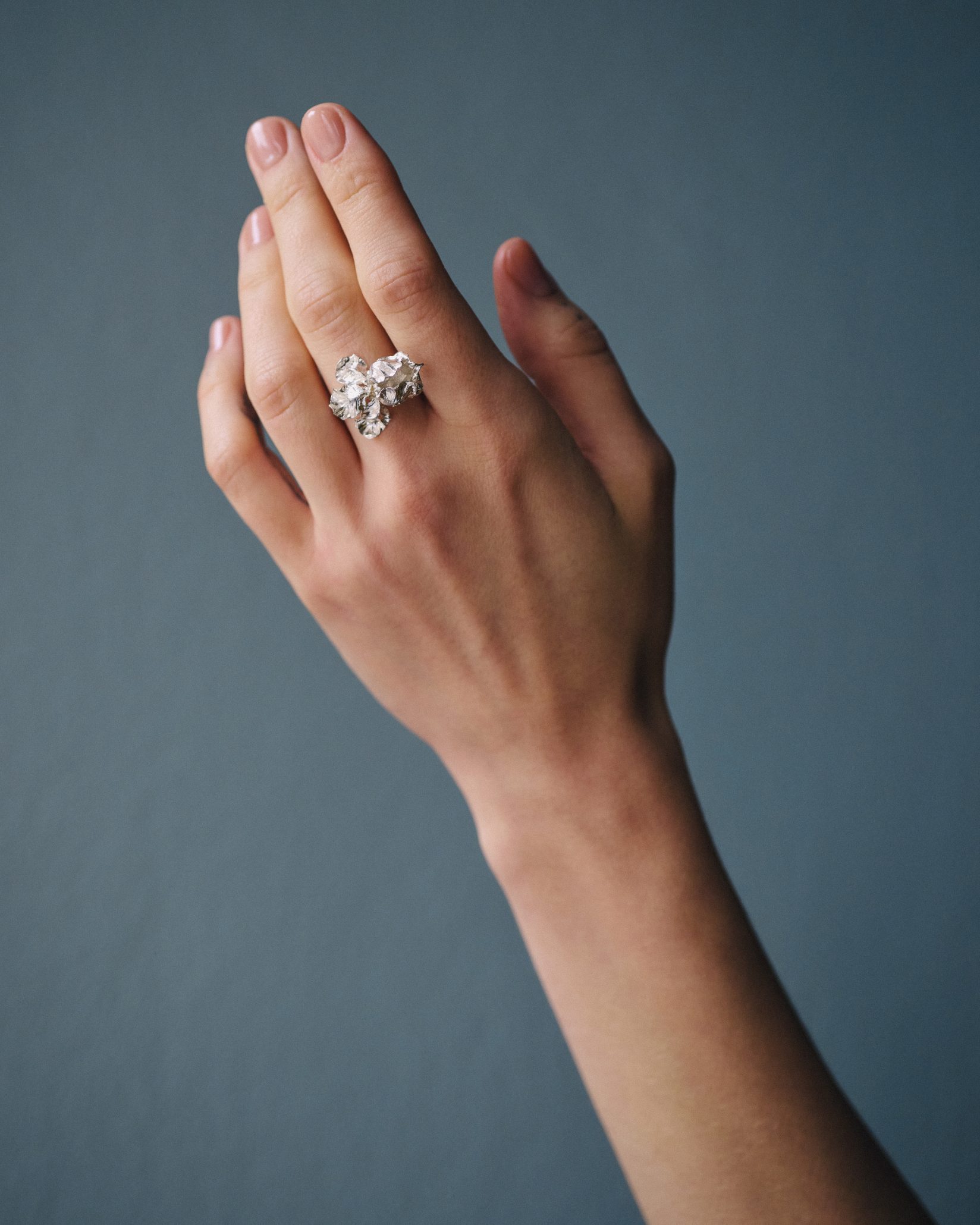 Eiréné je kolekcí skulpturálních šperků – výrazných, opulentních, a přesto harmonických. Obsahuje jak unikátní objekty, tak šperky určené pro každodenní nošení. Každý z nich je tichým symbolem, připomínkou osobní cesty a zároveň ochráncem vnitřního světa.