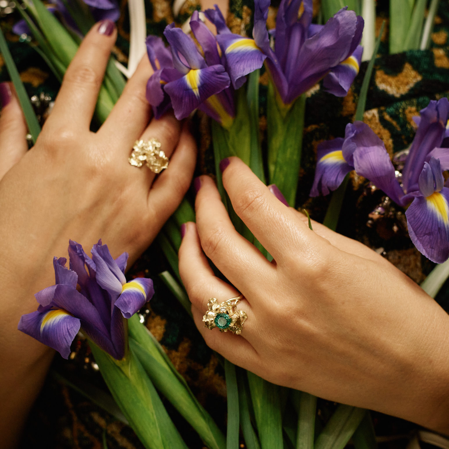 Kolekce nese jméno bohyně Eiréné, která v řecké mytologii zosobňuje mír, klid a rovnováhu. Je symbolem jemné síly spočívající v jistotě a tichu, nikoli v boji. Janja propojuje tuto myšlenku s kosatcem jako symbolem tiché hrdosti, odhodlanosti a věrnosti sobě samé. Šperky tak nejsou jen ozdobou, ale talismany a artefakty připomínající cestu do nitra, zdroj síly a odvahy stát pevně a beze strachu v pravdě.