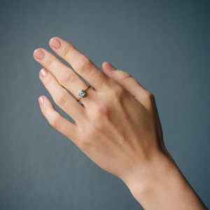 Dalším silným symbolem je les. „V mnoha mýtech a pohádkách je les místem transformace, kde hrdinové prochází zkouškami, a to vede k osobnímu růstu. Les může symbolizovat duchovní či psychologickou cestu, na které se jedinec mění a rozvíjí. Mnohé kultury vnímají lesy jako místa s vysokou duchovní energií,“ popisuje Janja. Hlavními kameny kolekce jsou akvamarin a růženín. Oba drahé kameny jsou spojeny s duchovním růstem a prohlubováním intuice, s pocitem klidu a rovnováhy. Akvamarín býval talismanem námořníků, kteří věřili, že je chrání na jejich cestě před nebezpečím moře. „Kámen je spojován s odvahou a ochranou, zejména při překonávání nebezpečí. Dokáže projasnit myšlenky a přináší klid a mír. Napomáhá schopnosti vyjadřovat se, dovolit si prožívat a tím se vrátit ke své autenticitě,“ říká Janja. Vedle akvamarínu je v kolekci Amor Fati důležitý růženín. Umí otevírat srdce, přijímat a vyjadřovat lásku. Je silně spojen s emocionálním uzdravením. „Dokáže zklidnit bolest a smutek, zahojit staré rány. Pomáhá přijímat se takoví, jací jsme,“ dodává šperkařka.