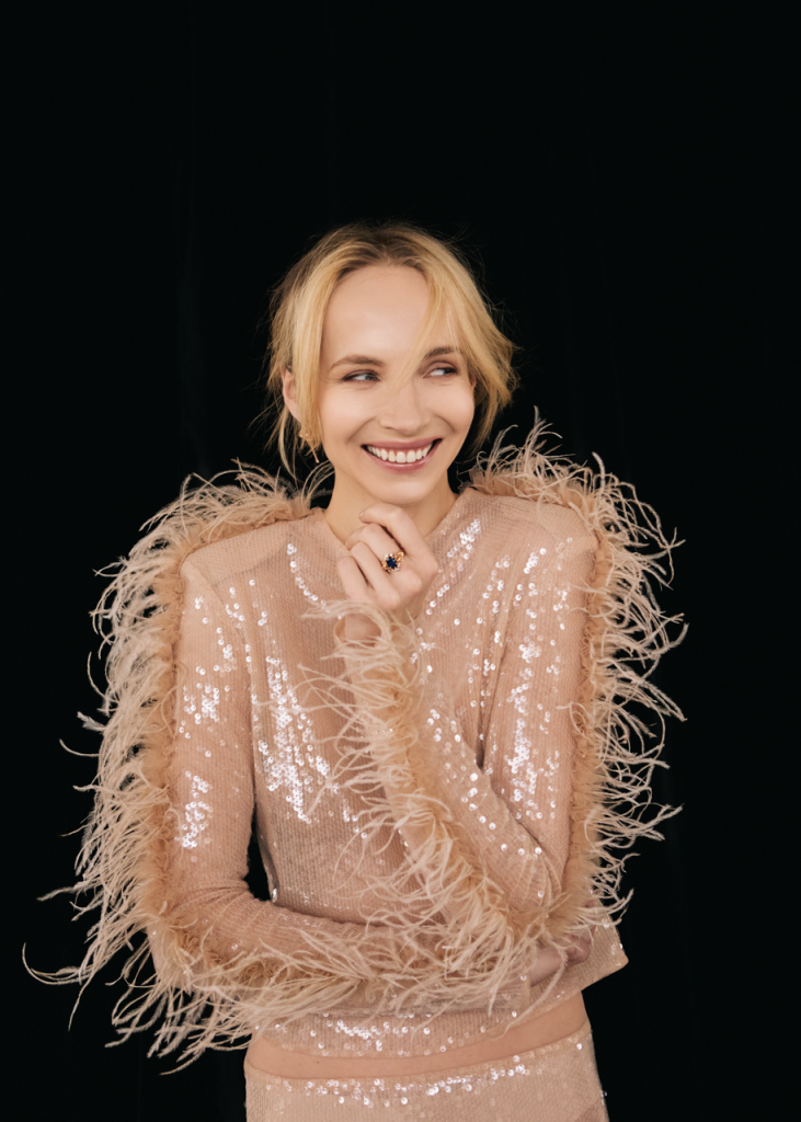 „Vnímám u ní přirozené napojení na přírodu i na sebe samu, schopnost naslouchat vlastní intuici i jemným signálům okolního světa. A to je kvalita, kterou dnes nemá mnoho lidí,“ říká designérka. Podle ní v sobě Jana přirozeně spojuje dvě polohy – jednu tichou, kdy je sama se sebou, tráví čas v přírodě a v určitém vnitřním klidu. A pak druhou, kdy vstoupí na divadelní jeviště nebo před kameru a její energie přirozeně zazáří. Právě schopnost pohybovat se mezi tichem a viditelností, mezi vnitřním světem a veřejným prostorem, je podle Janji kvalitou, která se hluboce potkává s myšlenkou kolekce Eiréné.